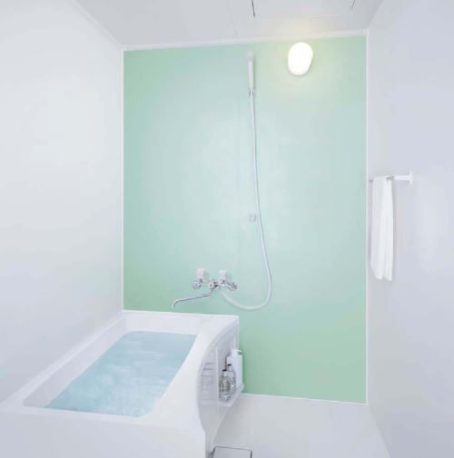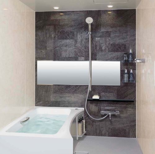 全てのサイズで底面長さ業界最長の新浴槽を搭載しました。1216サイズでは底面長さが1056mmあり、ゆったりと入浴できます。
